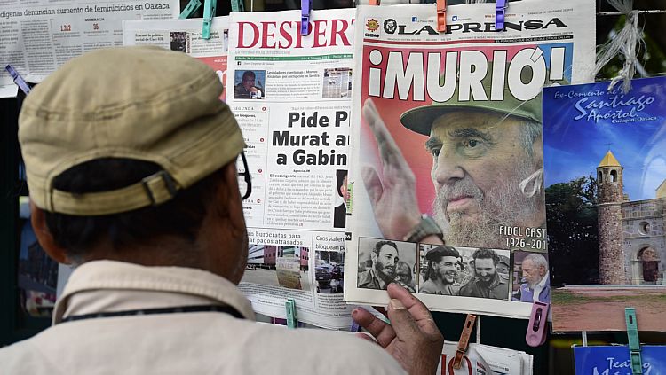 Anúncio da morte de Fidel na banca de jornais em Oaxaca, México.